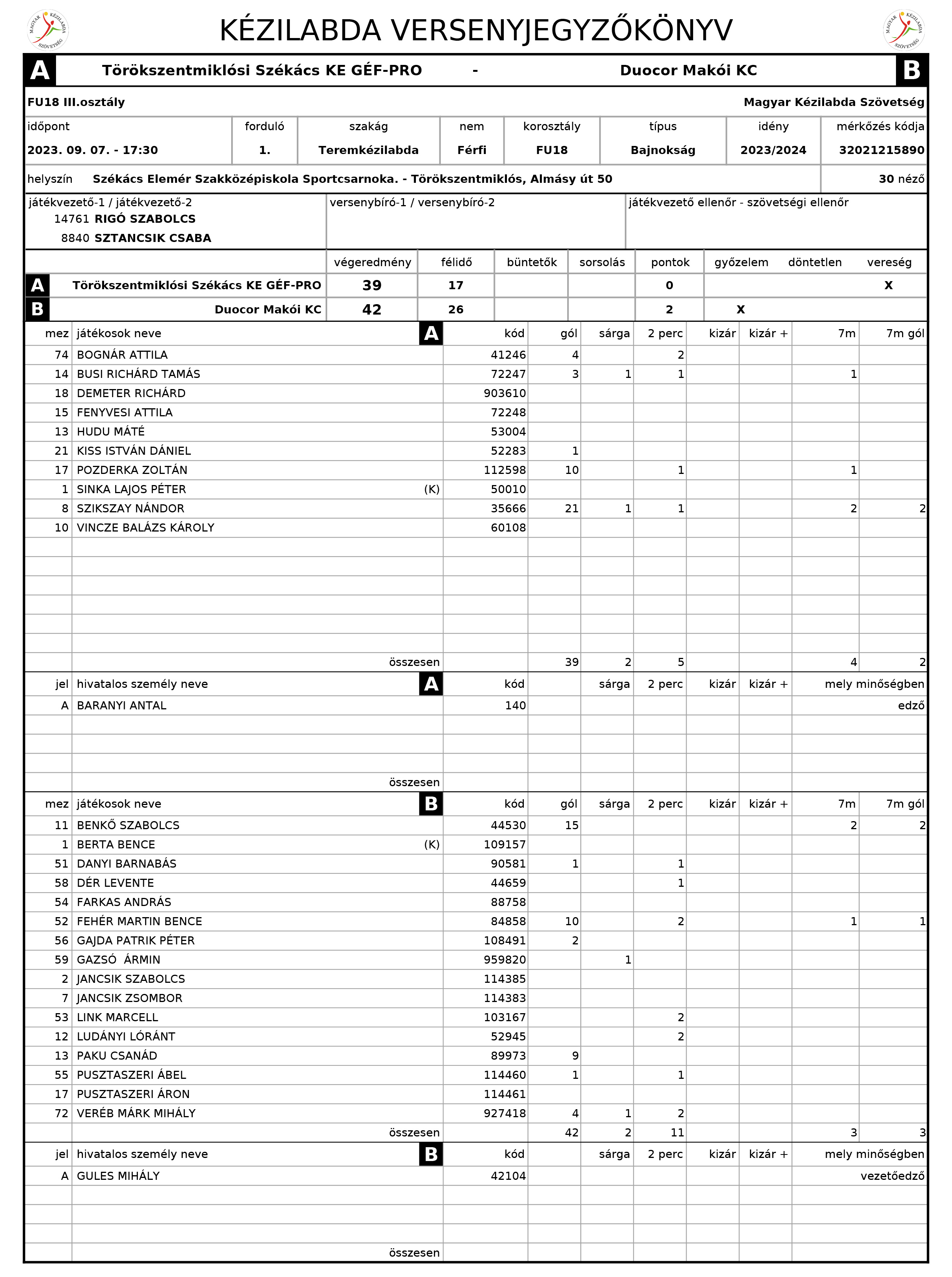 Törökszentmiklósi Székács KE - DUOCOR Makói KC 2023.09.07.