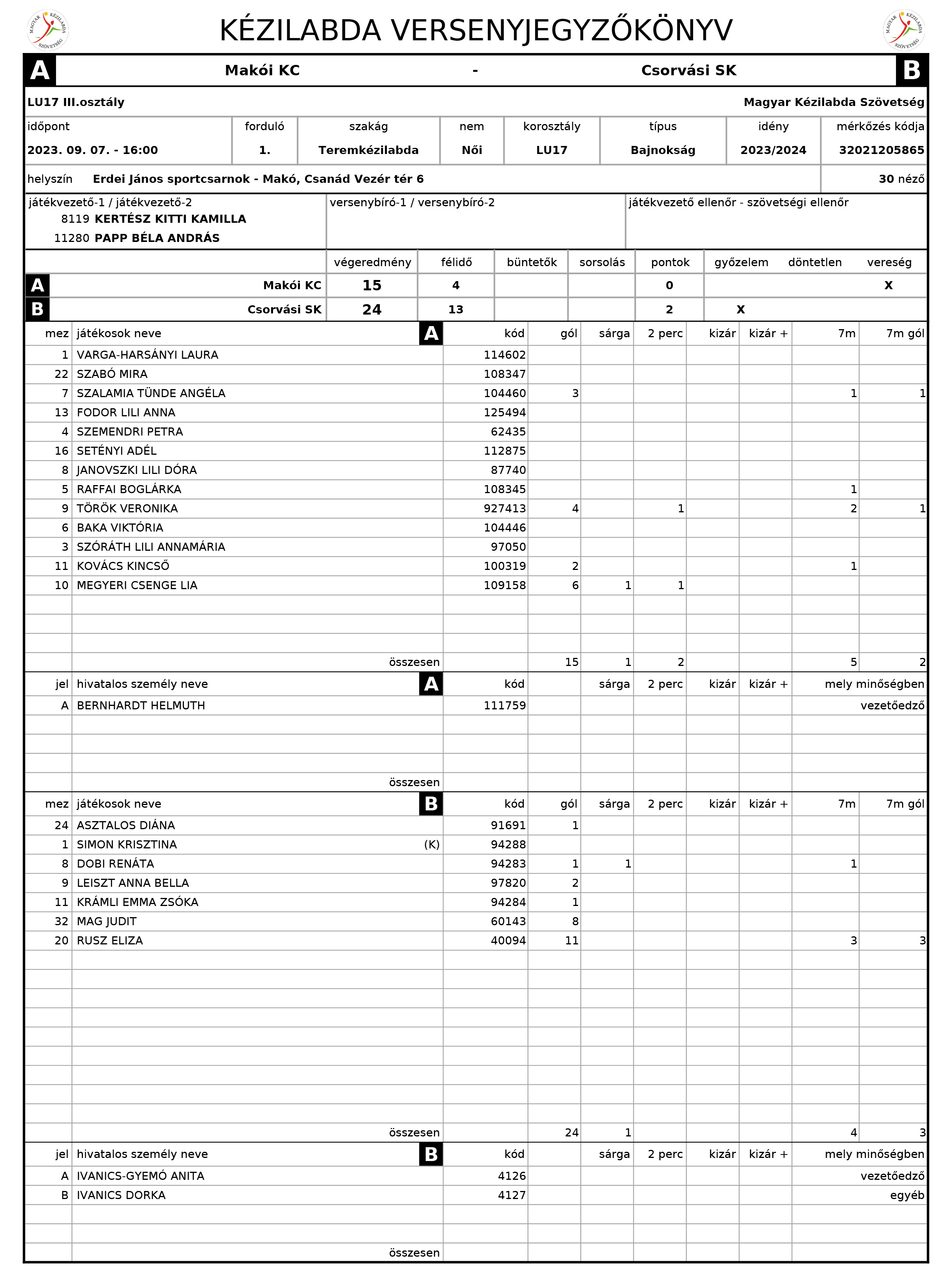 DUOCOR Makói KC - Csorvási SK 2023.09.07.