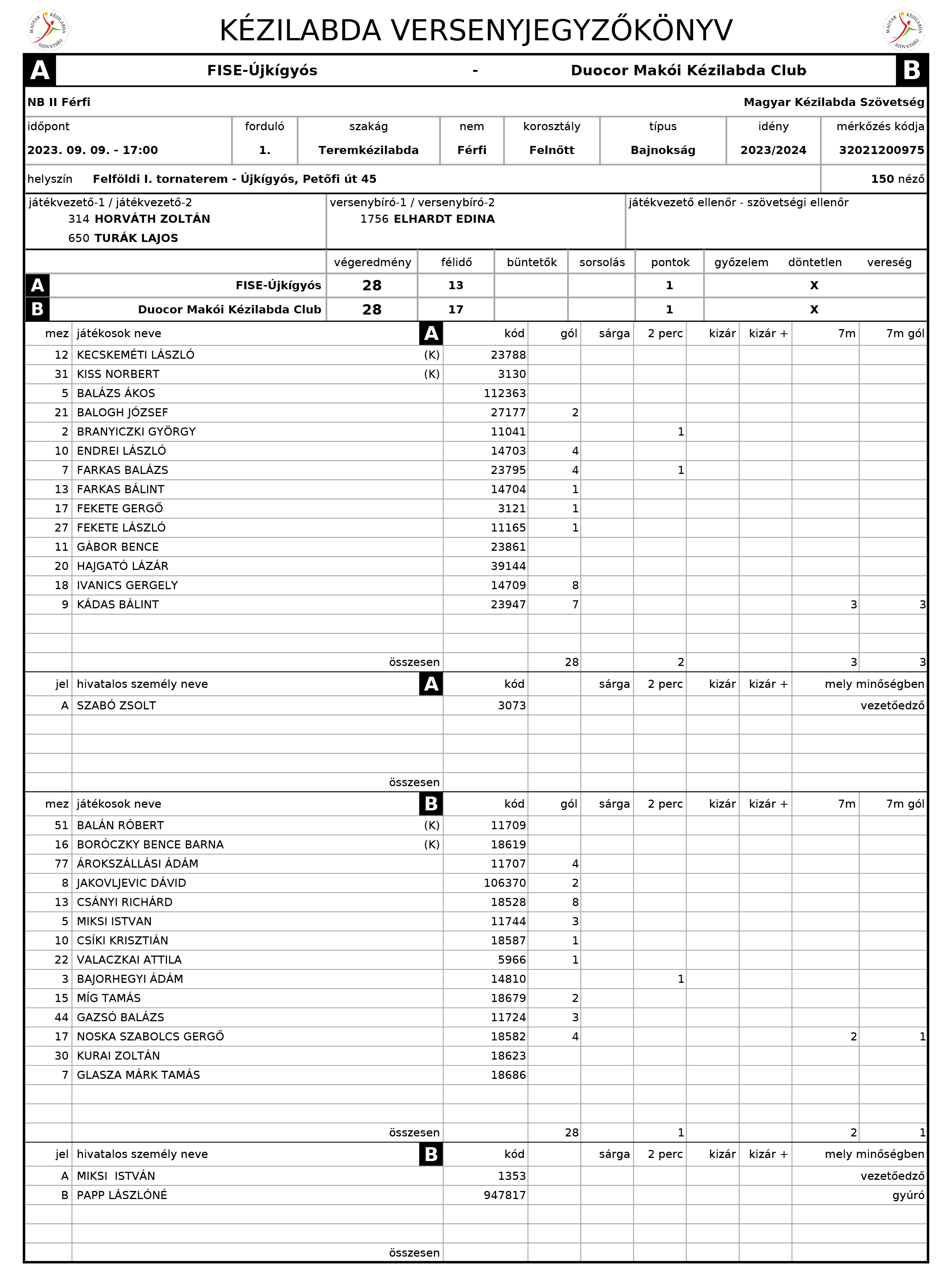 FISE Újkígyós - DUOCOR Makói KC 2023.09.09.