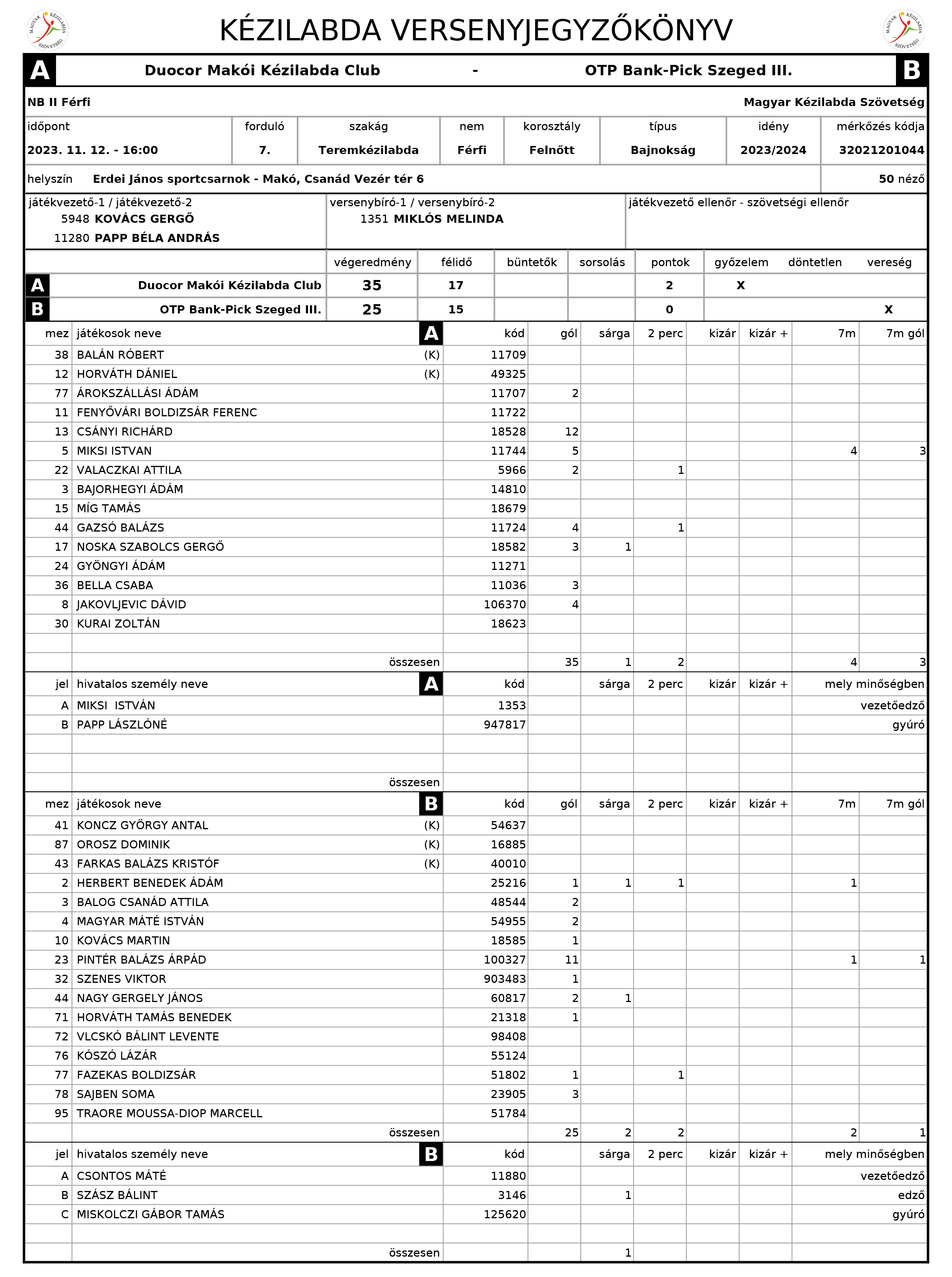 DUOCOR Makói KC - OTP Bank-Pick Szeged III. 2023.11.12.